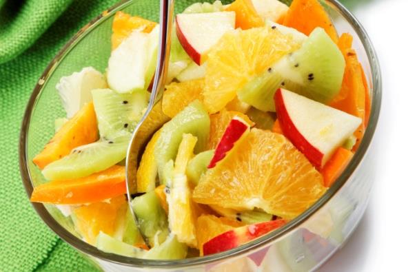 attachment-kazanova_salata_n-jpg Foto: Profimedia/Shutterstock Oljuštene pomorandže očistite od bele kožice i odvojte na kriške, jabuku i breskve oljuštite i isecite na tanke parčiće, kao i kivi. Sve pomešajte, poprskajte limunovim sokom i pospite bademom. Kefir i liker pomešajte i prelijte salatu. Sastojci:2 pomorandže1 kivi1 jabuka2 sveže breskve1 limun8 cl kefira4 cl likera od pomorandžekašika mlevenih badema