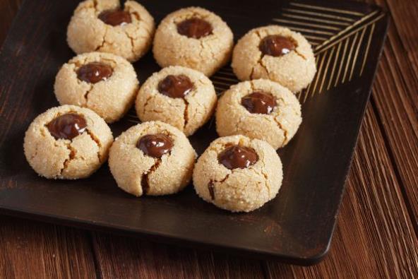 Izmutite jaje i dodate nutelu pa mešate dokle god se ne stvori kremasta masa. U tu smesu dodajete postepeno brašno. Nauljite ruke i oblikujete loptice. Zatim prstom pritisnete svaku lopticu kako bi napravili udubljenje u sredini. Peče se 10 minuta na 180 C.