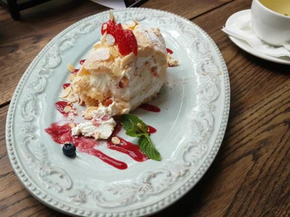 Pripremite testo tako što ćete mikserom umutiti 3 belanca i dodati preostalih 175 g šećera u prahu. Dodajte sirće i mešajte. Nežno rasporedite u posudu za pečenje. Pecite 15-18 minuta na tihoj vatri i ostavite 10 minuta da se ohladi u šporetu, a zatim ga prebacite na novi papir.