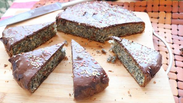 Vruć kolač preliti rastopljenom čokoladom.