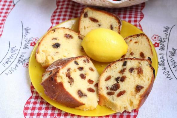 Umutiti jaja sa šećerom, dodati brašno sa praškom za pecivo, limun koricu i sok, suvo groždje, pavlaku, i mleko i sve dobro izjednačiti.