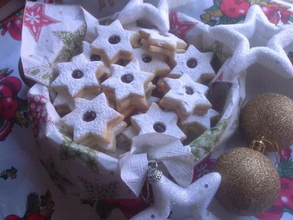 U posudu stavite brašno koje ste prosejali kroz sito pa dodajte maslac ili margarin sobne temperature. Sjedinite i dodajte sitni šećer koji ste takođe prosejali kroz sito da ne bi bilo grudvica zamesite glatko testo.....razvaljajte na debljinu koju želite pa modlicama pravite zvezdice.Pecite na 160 stepeni oko 10 minuta zavisno od rerne.