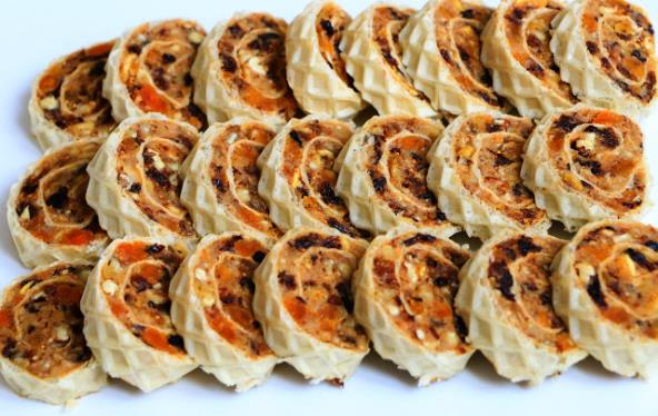 Jako ukusan i dekorativan rolat od suvog voća. Priprema se brzo a za već nekih sat vremena se može izrezati i poslužiti.
