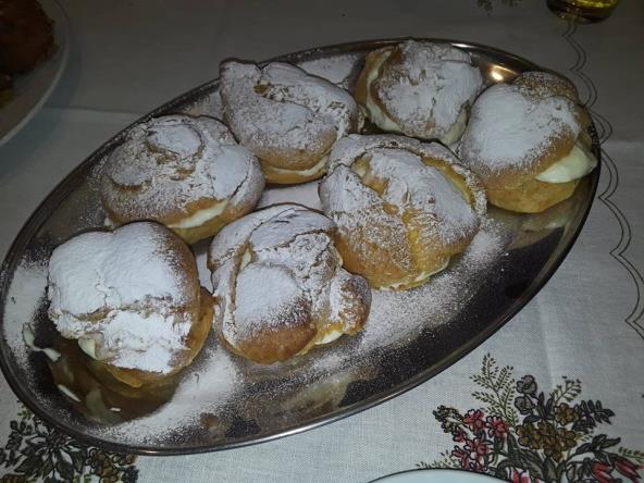 Za testo: U šerpu sipati vodu i ulje,pa kad provri zakuvati brašno sa pola praška za pecivo. Kad se ohadi dodati 5 jaja jedno po jedno i mutiti da se dobije lepa vazdušasta masa.