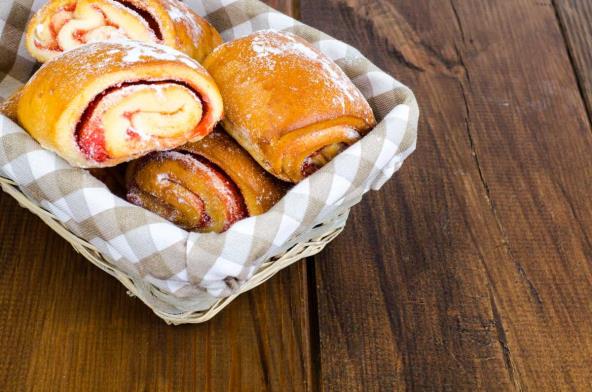 Svaku kufku istanjiti rukama ili oklagijom na debljinu od oko 2-3mm, premazati džemom i urolati.