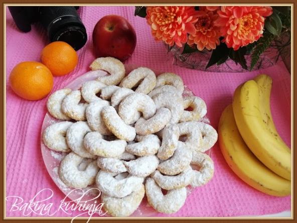 Zamesiti testo i praviti kiflice. Peći na 180 stepeni C oko 15 min. Uvaljati u prah šećer. Uživajte.