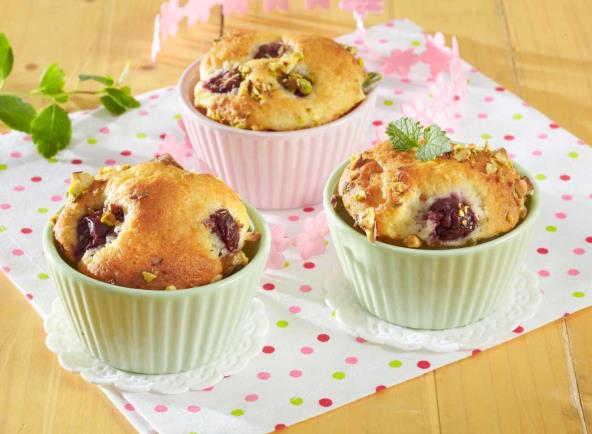 Uključite rernu da se zagreva na 220 stepeni. Jaja sa šećerom dobro umutiti pa dodati i vanilu. Zatim dosuti i ulje, mleko, brašno, prašak za pecivo, so i umutiti sve zajedno. Podmazati kalup ili poređai papirne korpice... Kako vam je lakše. Sipati smesu da ne budu korpice pune, jer će narasti, pa će vam biti prevelike. Na svaki mafin staviti 3,4 višnje. Peći dok ne porumene, otprilike 20 minuta. Pečene izvaditi iz kalupa, posuti prah šećerom ili otopljenom čokoladom.