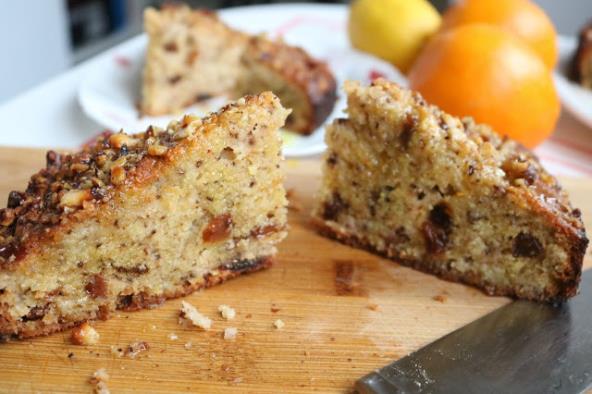 Umutiti jaja sa 5 kašika šećera, dodati griz i brašno sa praškom za pecivo, koricu pomorandže, suvo grožđe ulje i mlevene orahe.