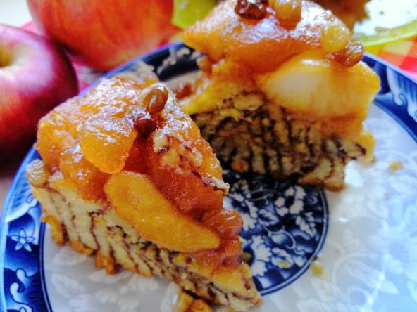 U šerpu istopiti 200 g šećera da se pretvori u karamel pa dodati kockicu margarina i u nju seckane jabuke na kocke. Promešati i dinstati 5-6 min poklopljene.