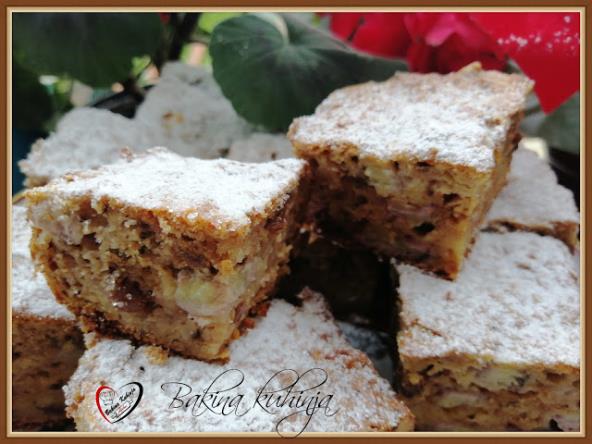 Dodati sve sastojke pa izmešati. U pleh staviti pek papir i izliti testo. Peći na 200 stepeni 45 minuta.