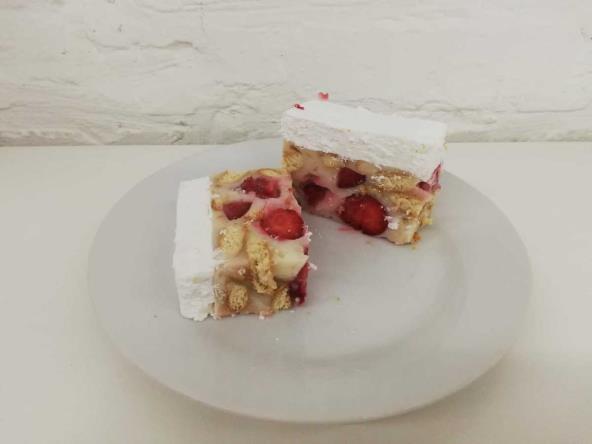 Smesu toplu sipati u tepsiju obloženu folijom i ostaviti da se ohladi.