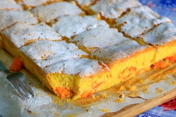 Veoma mekan i ukusan kolač sa kajsijama. Gotov pospite prah šećerom ili poslužite sa šlagom, uz kuglu sladoleda. Može i drugo voće da se kombinuje.