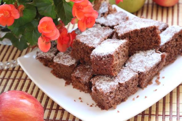 Sipati u činiju kiselu vodu, dodati sve sastojke, dobro izmešati i sipati u okrugli pleh koji ste obložili pek papirom. Peći na 200°C oko 45-50 min.