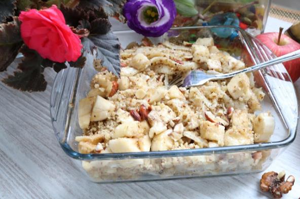 Na malo ulja propržiti prezle, pa dodati rezance. Dodati orah, šećer ili med i seckane banane.