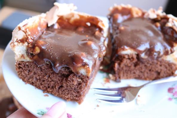 Smanjiti rernu na 180°C i peći još 25 min. Preliti čokoladom i ostaviti da se ohladi.