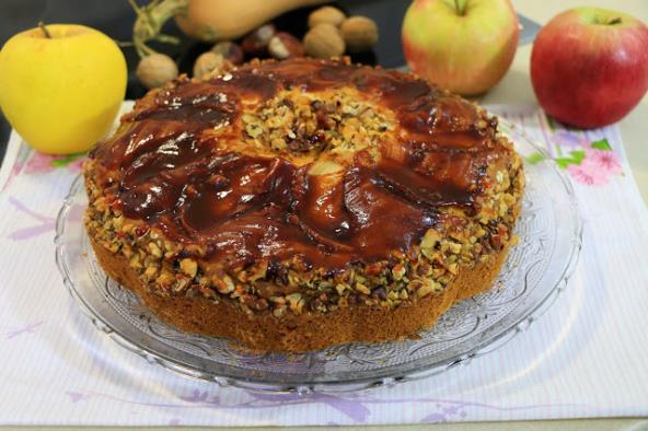 Divan, mirisan kolač sa jabukom, orasima, džemom i bundevom.