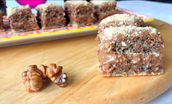 Kolač možete da sečete kao tortu, kao kocke, na štanglice, po vašoj želji. Ako hoćete kolač da poslužite kao sitne kolače , onda u fil dodajte malo mlevenog keksa ili oraha da bi fil bio gušći.