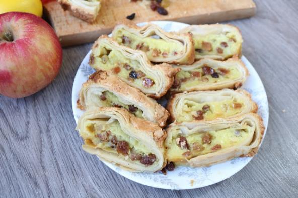 Mleko skuvati i zasladiti po želji. Dodati 2 kašike griza i razmućen puding. Čim se zgusne skloniti. Jaje umutiti i izmešati sa grizom, pa kad se prohladi fil dodati jaje sa grizom i suvo grožđe.