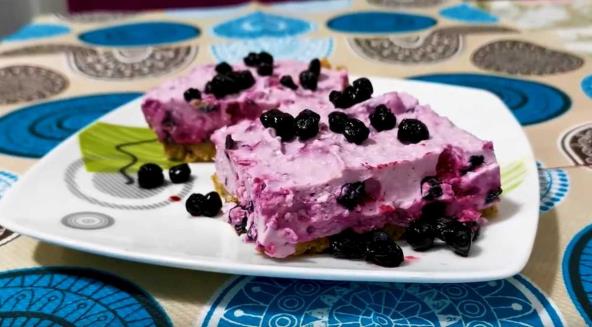 Stavite slatku pavlaku u posudu. Dodajte sir. Ella ( Rikotu, Maskrapone, Sremski sir.....) Dodajte otopljeni želatin. Stavite borovnice u smesu. Sve dobro promešajte varjačom.
