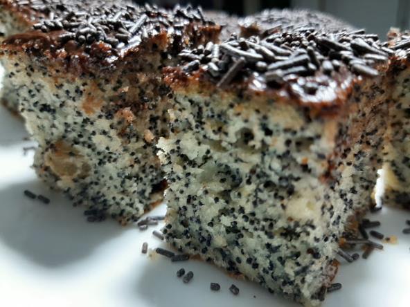 Umutiti jaja sa šećerom, dodati brašno sa praškom za pecivo, malo cimeta, suvog grožđa, jogurt, ulje, mak i sve dobro izmešati. Sipati u podmazan pleh i razbacati po testu džem po jednu kašičicu. Peći na 200°C 40 min. Odozgo može rastopljena čokolada ili prah šećer. Fantastično mekano slatko sočno uživajte.