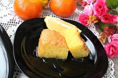 U šećer dodati vodu i sok od pola limuna 1 vanilin šećer i kuvati oko 5 min. Ohladiti. Kolač pečen iseći na kocke pa preliti sirupom.