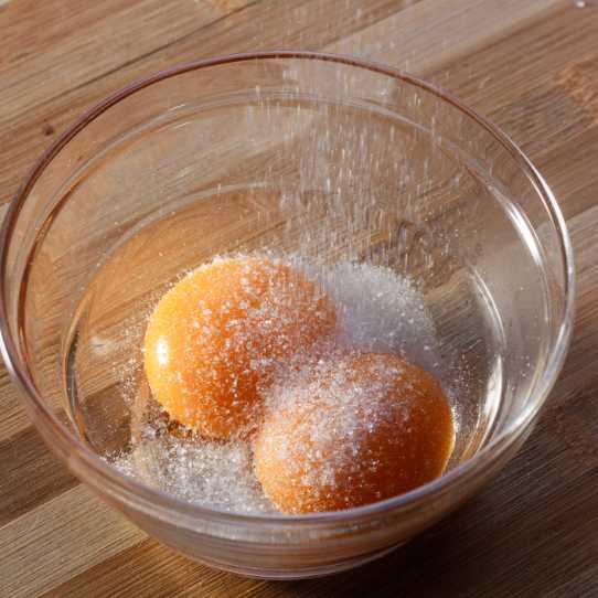 Umutite mikserom žumance i šećer dok smesa ne postane penasta i vaš desert je gotov.