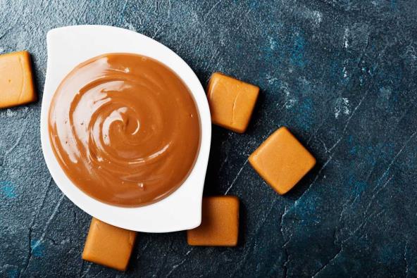 Podmažite tepsiju veličine 30x25 cm. U šerpu srednje veličine sipajte šećer, smeđi šećer, kukuruzni sirup, kondezovano mleko, slatku pavlaku i puter. Sve vreme sa termometrom za slatkiše pratite temperaturu smese i mešajte. Kada termometar dostigne 120°C sklonite šerpu sa vatre. Dodajte vanilu. Prebacite smesu u pripremljenu tepsiju i ostavite da se smesa potpuno ohladi. Kad se smesa ohladi, isecite karmele u male kvadrate i umotajte ih u ukrasni papir.