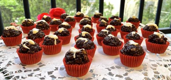 Usitniti musli oklagijom, otopiti maslac i čokoladu, dodati sve u musli, ubaciti dve kašike kakao praha, zatim sve sjediniti, ostaviti u frižideru da se ohladi i da se stegne masa i praviti kuglice. Po želji dekorisati. Prijatno!