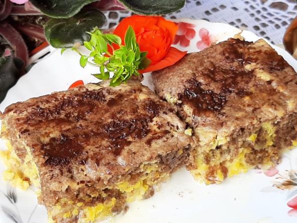 Umutite jaja sa šećerom, pa dodajte griz i brašno. Podelite dobijenu smesu na veći i manji deo i u manji deo stavite cimet, suvo grožđe i kakao. Lepo sjedinite. Pleh podmažite i pospite brašnom. Svetli deo stavite na dno a preko toga tamni koji ćete raširiti kašikom. Većom čačkalicom malo testo izmešati. Pecite na 200°C oko 20 minuta. Vruć kolač isecite na kocke, pa prelijte provrelim mlekom koje ste zasladili po želji i dodajte vanilin šećer. Sačekati da koh upije mleko i prohladi se pa ga možete služiti.