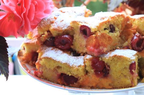 Pleh obložiti pek papirom pa sipati testo. Odozgo rasporediti kajsije.