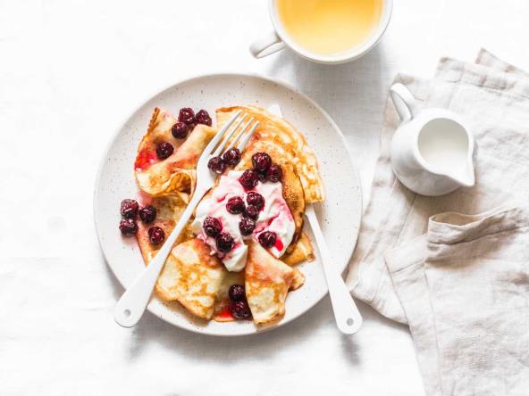 Ispeći palačinke, a u trešnje sipati vodu, jedan vanilin šećer i šećer po želji i kuvati 10-15 min da voda uvri polovinu.