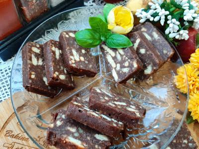 Vodu i šećer pomešati i provreti, dodati margarin i čokoladu. Mešati da se izjednači i istopi. Skinuti sa šporeta dodati mlevene orahe i keks pa dobro izjednačiti .
