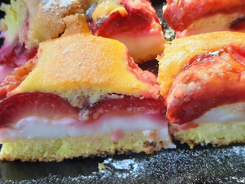 Umutite jaja, pa dodajte brašno sa praškom za pecivo, ulje, jogurt i sve promešajte. Podmažite pleh 30x20 cm i sipajte pola testa i lepo ga rasporedite. Pecite na 200°C 15 min. Skuvajte puding i malo prohladite, pa istreste na ispečeno testo. Odozgo rasporedite šljive, a preko njih ostatak testa. Možete da stavite odozgo još jedan red šljiva. Vratite u rernu još 40-45 min. da se lepo ispeče. Pospite vanilin šećerom i secite kada se kolač potpuno ohladi.