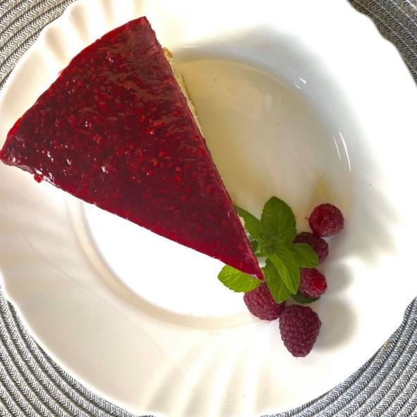 Aktivirati želatin, u šerpicu za kuvanje dodati tri kašike vode i dve kašike kristal šećera, pa krenuti sa kuvanjem. Dodati i maline, i želatin i napraviti kompaktnu smesu. Preliti preko prethodno ohladjenog kolača. Nositi na hladjene. Servirati i dekorisati po želji. Prijatno!