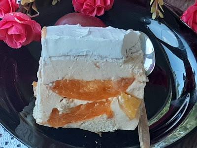 Preko piškota sipajte 1/3 kreme rasporediti pa na nju poredjati u razmacima kriške oljuštenih breskvi i kajsija.