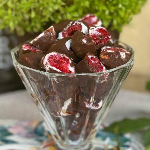 Malinu stavite na čačkalicu i umočite u grčki jogurt. Odložite na postolje koje ste obložili pek papirom. Ponavljajte proces sve dok imate malina. Zaledite. Otopite čokoladu i kokosovo ulje. Zaleđene maline i jogurt potopite u čokoladu. Stavite da se ohlade.