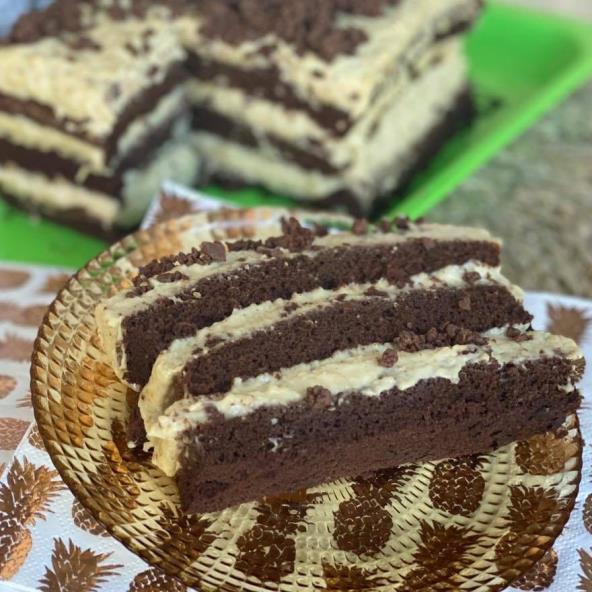 Umutite sastojke za koru, zatim smesu prespite u pleh za pečenje na koji ste stavili pek papir. Pecite na 180°C 15-20 minuta. Kada se ispeče, isecite na tri jednaka dela. Fil napravite tako što ćete skuvati tri pudinga od vanile u koji dodajte orahe. Zatim ostavite da se ohladi. U posebnoj činiji umutite margarin, pa postepeno dodajte fil i mutite dok se mase ne sjedine. Kore od biskvita po želji prelijte čokoladnim mlekom, pa nanosite fil. Dekorišite po želji.