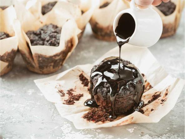 4. Napravite glazuru od čokolade. Izvadite mafine iz kalupa i prelijte glazurom.