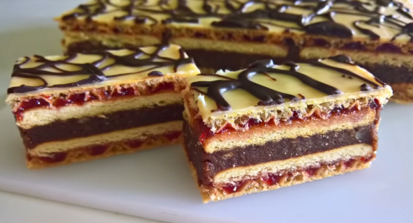 Za posnu varijantu koristite postan keks i postan margarin. Predivan spoj čokolade, džema, oraha i keksa ostaviće vas bez daha.