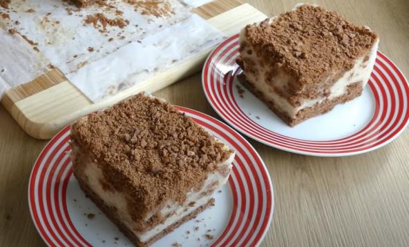 Nekoliko keksića izmrvite skroz i pospite preko. Stavite u frižider na par sati da se stegne pa služite.