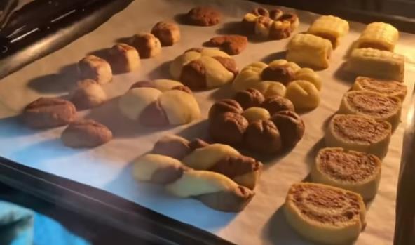 Umutite maslac i šećer, a onda dodajte brašno. Dobijeno testo razdvojite na dva različita dela. Jedan deo ostavite takav kakav jeste, a u drugi deo dodajte kakao. Dobijeno testo uvijte u dve folije pa ostavite u frižideru da se odmori oko pola sata, a može i više. Nakon toga razvijajte testo i pravite oblike.