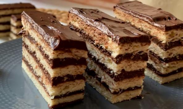 Koru premažite sa čokoladno smesom iz jedne posude, pa preklopite drugom korom i opet premažite. Tako radite dok ne utrošite materijal. Poklopite kolač i ostavite u frižideru preko noći.