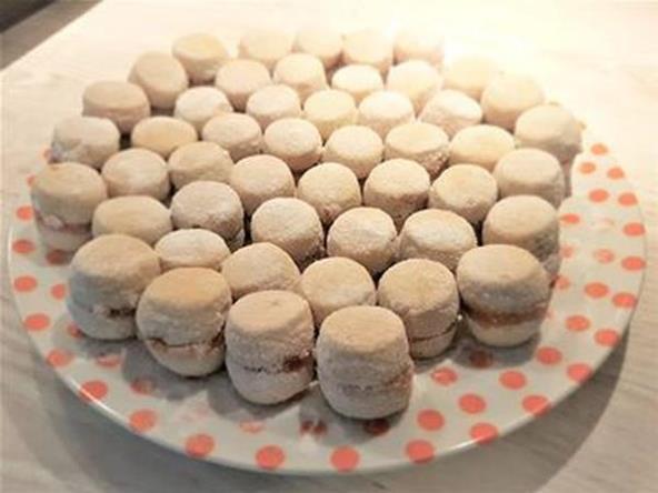 Rernu zagrejte na 180 stepeni. Kada su gotove premažite ih domaćim džemom od kajsije spajajte po 2 i uvaljajte u šećer u prahu.