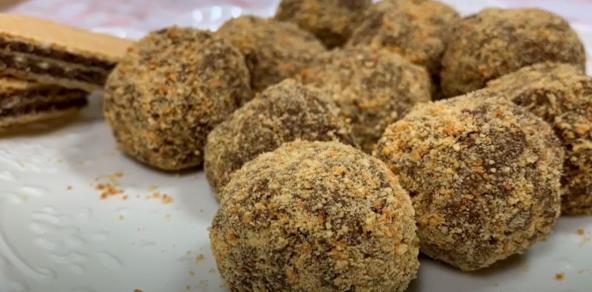Ruke nauljite i vadite kašikom smesu oblikujte kuglice rukama i valjajte u mleveni keks.