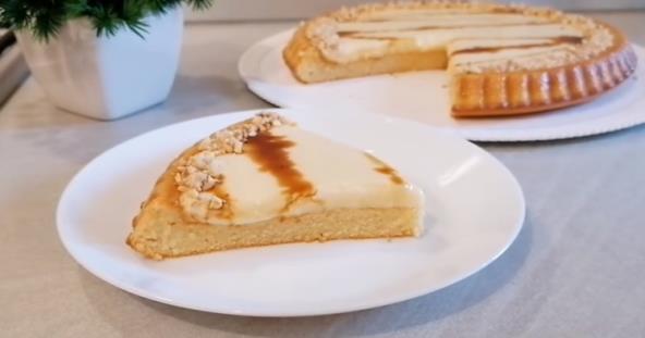 Kalup za tart prečnika 28 cm, nauljite i pospite brašnom, pa sipajte dobijenu smesu. Pecite 25 minuta na 180°C. Probodite čačkalicom, ako je suva, kora je gotova. Uz pomoć tanjira izvadite koru, i premažite ivice džemom od kajsija.