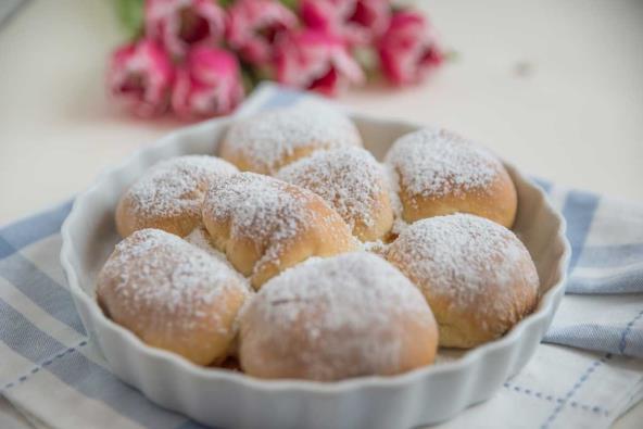 Pečene buhtle pokriti krpom, a pre služenja posuti šećerom u prahu.
