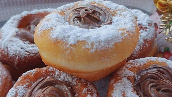 U mleko sipajte šećer i kvasac, zatim dodajte kašiku brašna. Izmešajte da kvasac nadođe. Dodajte jaje, pa ga malo žicom umutite, potom sipajte 350 g brašna, ulje, so, koricu limuna i zamesite glatko mekše testo. Ostavite da naraste, pa razvijte na pola cm. Izvadite krofne čašom. Izvadite jednu krofnu, pa još jednu čiju sredinu izvadite sa manjom čašicom da krofna ima rupu. Stavite jednu preko druge. Ređajte na podmazan poslužavnik i pokrijte da odmari oko 15 min. Pržite u dubokom ulju i punite kremom ili džemom.