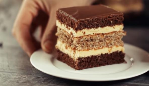 Za prvi meki kolač: Umutite jaja i šećer, dodajte vodu i još malo mutite. Pomešajte brašno, kakao i prašak za pecivo, pa dodajte u smesu sa jajama. Žicom promešajte da se sjedini. Tepsiju dimenzija 25x30 cm obložite pek papirom i sipajte dobijenu smesu. Pecite u rerni na 180°C nekih 30 minuta. Od ispečenog testa isecite po dužini pola kore i stavite u tepsiju dimenzija 25x34 cm.