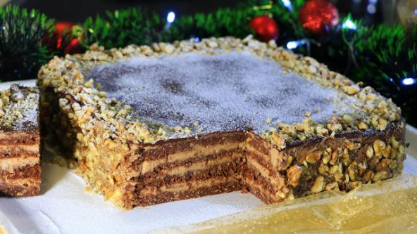 kora,preliv, fil, kora, preliv, fil, kora, preliv, fil, kora, preliv, fil..Stavite tortu u frižider da se stegne pa je ukrasite.