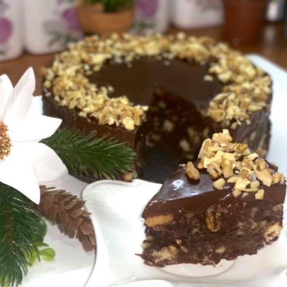 Vodu i kakao promešati i kuvati na umerenoj temperaturi. Dodati šećer, orahe i maslac. Sve sjediniti pa preliti preko mrvljenih kolutića. Dodati i kap, dve ekstrata vanile. Promešati dok se smesa ne ujednači. Smesu sipati u kalup i odneti na hladjenje. Za glazuru zagrejati slatku pavlaku i dodati joj čokoladu. Preliti preko torte i odneti na hladjenje. Dekorisati po želji. Prijatno!
